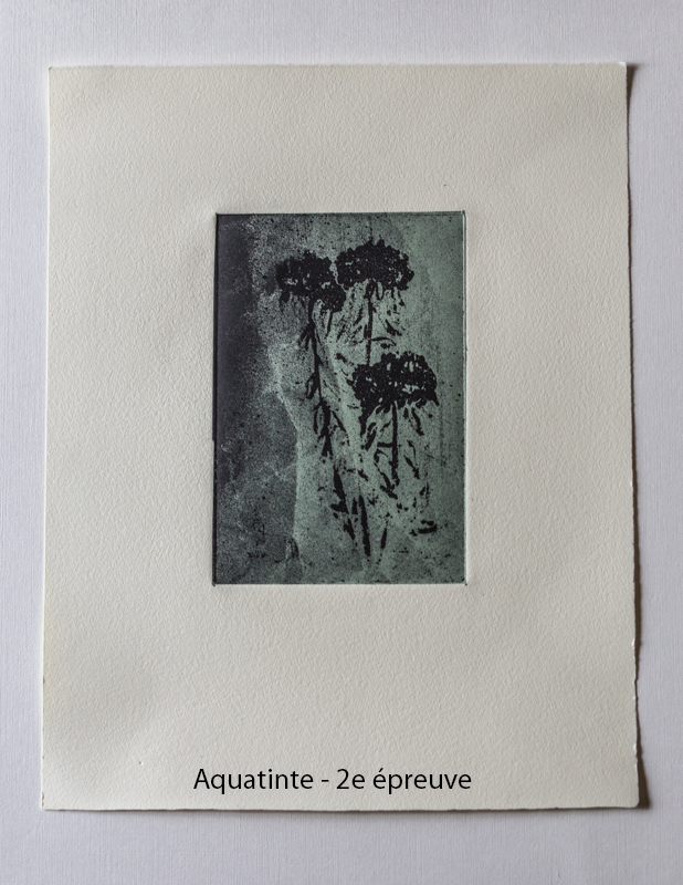 Un stage de gravure chez Anne Marie Rubi qui m’a permis de découvrir de nouvelles techniques artistiques. L’aquatinte au sucre.